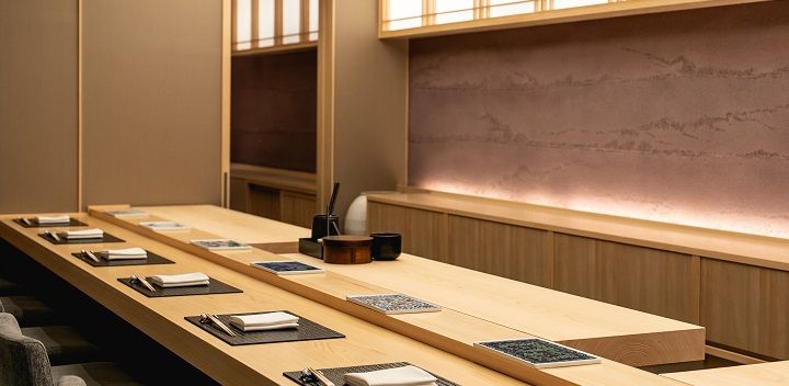 一歩足を踏み入れれば、シンプルで落ち着いた色合いの空間が広がっています。ひとつひとつの席を広く設けた空間で、ゆったりとおくつろぎください。 「鉄板焼しろかね」では、独創的な発想の鮨を、鮨白金さえきでは濃厚でこだわりの深い肉の鉄板焼きを目の前で、そして「CHEF'S ROOM」では旬の食材をふんだんに使用した季節に合わせた四川料理やフランス料理をお楽しみいただけます。いずれの店舗でも、素材からこだわり、ライブ感あふれる時間の提供にこだわっています。