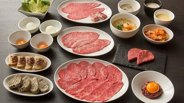 ■Choregi Salad ■Assorted Appetizers (2 Types) ■Beef Yukhoe ■Today's Tapas ■Wakame Seaweed Soup ■Rice ■Tongue Assortment ■Skirt Skirt Steak (Salted) ■Specially Selected Rare Cuts (Salted) ■Top Blade (Sirloin) with Sauce ■Specially Selected Rare Cuts (2 Types of Sauce) ■Sirloin Sukiyaki ■Three Types of Hormone Miso ■Dessert [Salad, soup, and rice are all free to refill.]