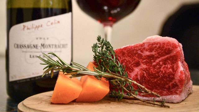 特選A4ランクの和牛熟成肉を、お客さまの目の前、テーブル席で焼いてご提供いたします。ローストビーフが美味しく仕上がる決めては、専用の鉄板と温度計による温度管理です。表面を焼いたあとは余熱で内部まで火が入っていきます。分厚く切り分けられたローストビーフはレアステーキとは違った美味しさです。これまで味わったことのない感動を、当店のローストビーフでお楽しみください。