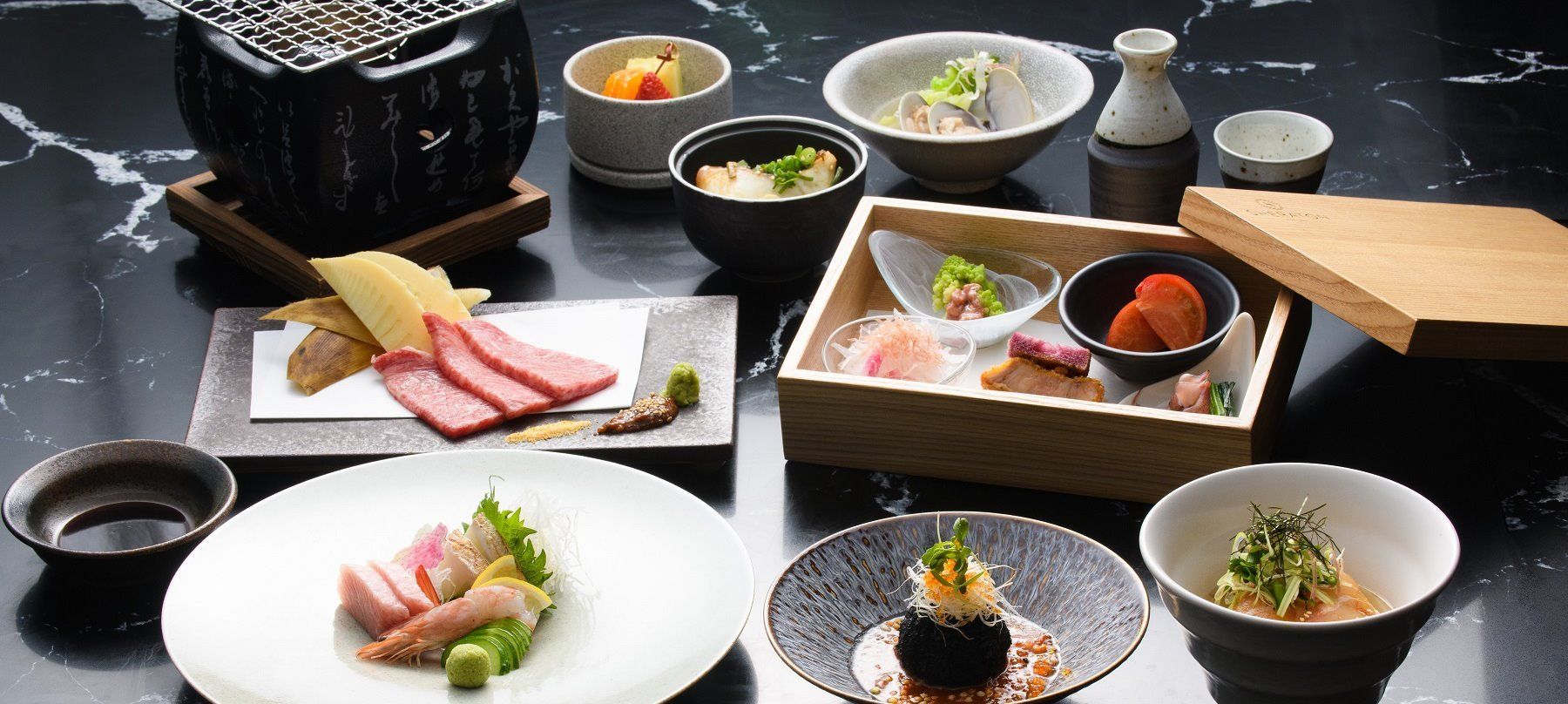 *Photos are for illustrative purposes only. *The sashimi, small pot, and grilled dish can be changed to one of the following menu items for an additional fee.