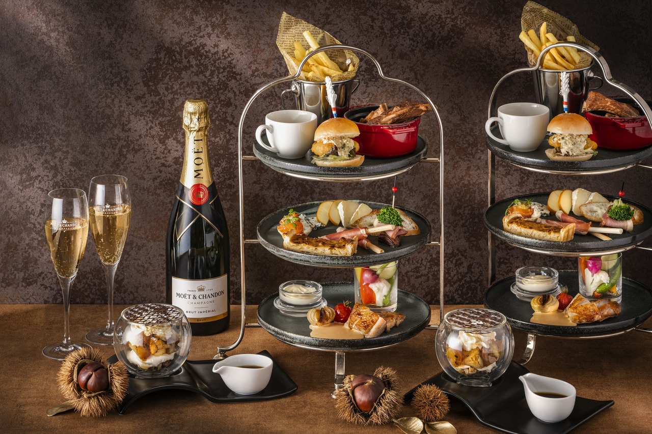 Enjoy this autumn-only high tea accompanied by free-flowing Moët & Chandon, featuring the alluring sparkling bubbles. Enjoy a special moment to your heart's content with dishes and desserts made with seasonal ingredients. Surrounded by the night view and the sounds of piano music, this experience is recommended for couples, groups of women, and friends.