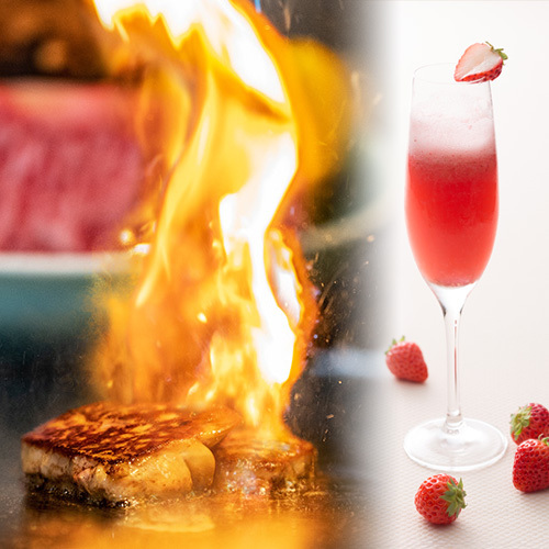 【WEBランチ優待】炎に魅せられるフォワグラのフランベ、海老のトリュフ仕立て、黒毛和牛フィレステーキ、味噌チーズリゾットまで。鉄板を囲んで贅沢なクリスマスをお過ごしください。