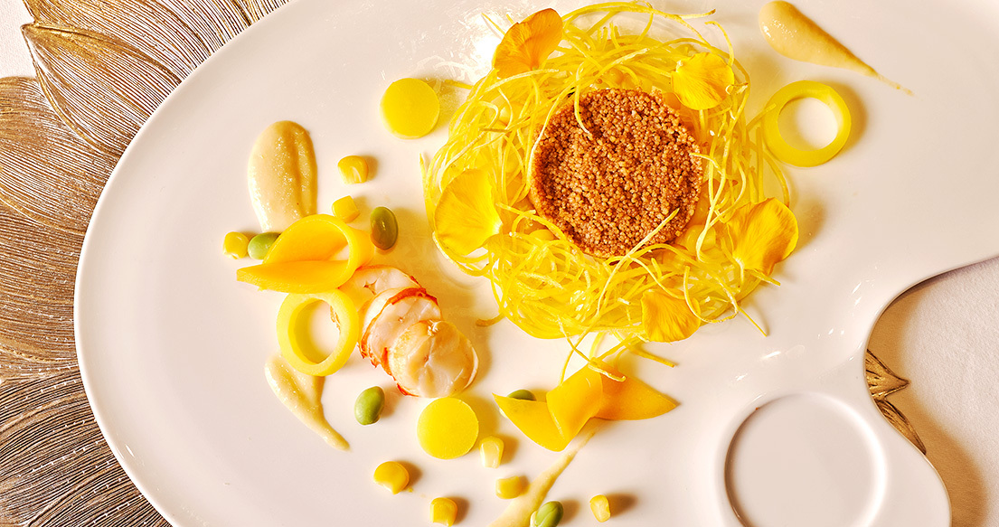 フィンセント・ファン・ゴッホが南仏で描いた数々の名画に着想を得た期間限定の饗宴。「ひまわり」や「星月夜」などの代表作をモチーフに、アルルの陽光や鮮やかな色彩、静かな夜の情景までを一皿ごとに表現しました。南フランスの自然とゴッホの歓声が響き合う、特別なひとときをご堪能下さい。