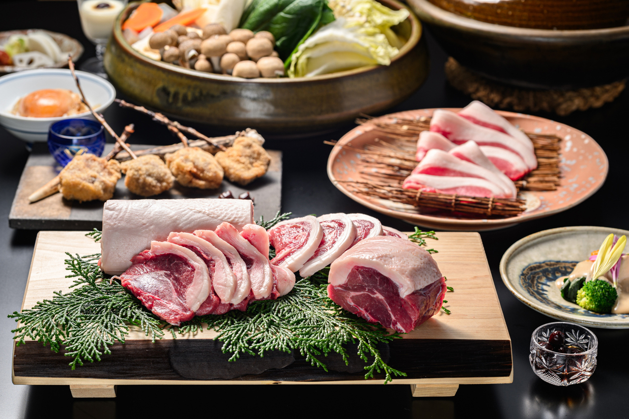 Located in the castle town of Tamba-Sasayama, the historic Ryokan Kinmata—once visited by Katsura Kogorō himself—is said to be the birthplace of Botan Nabe, where wild boar meat was first stewed in miso.