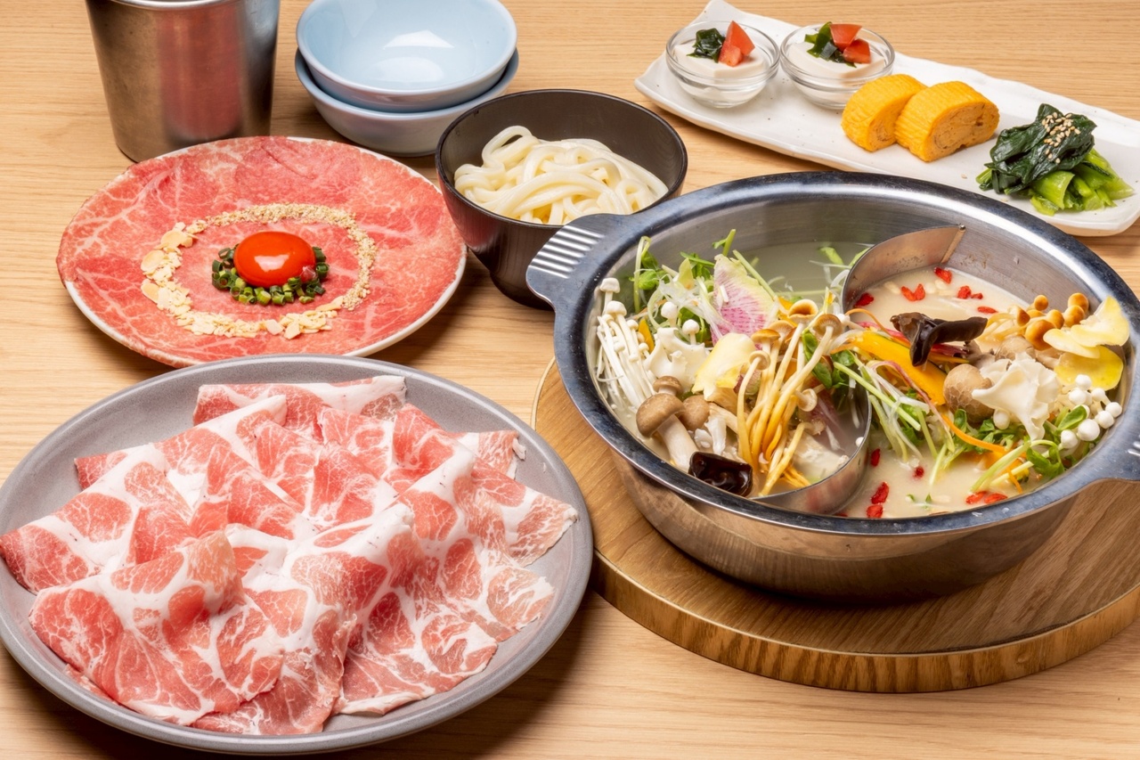 [Reservation only] ☆Includes rare loin yukke☆Enjoy two types of soup! "Domestic pork shabu-shabu" course