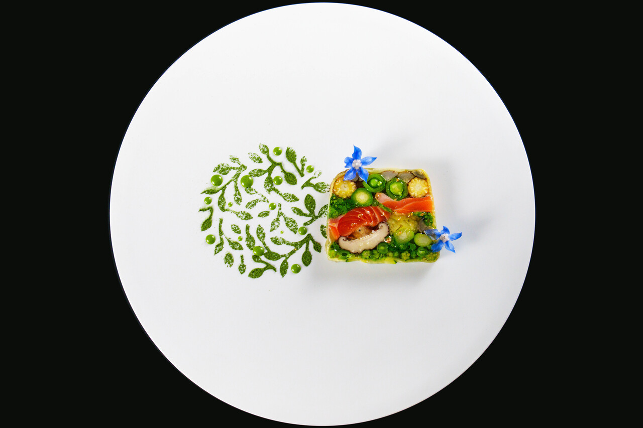 <Premiere Entreè> 紅ズワイ蟹と福井県産カブのババロワ 越前春菊とのハーモニー
