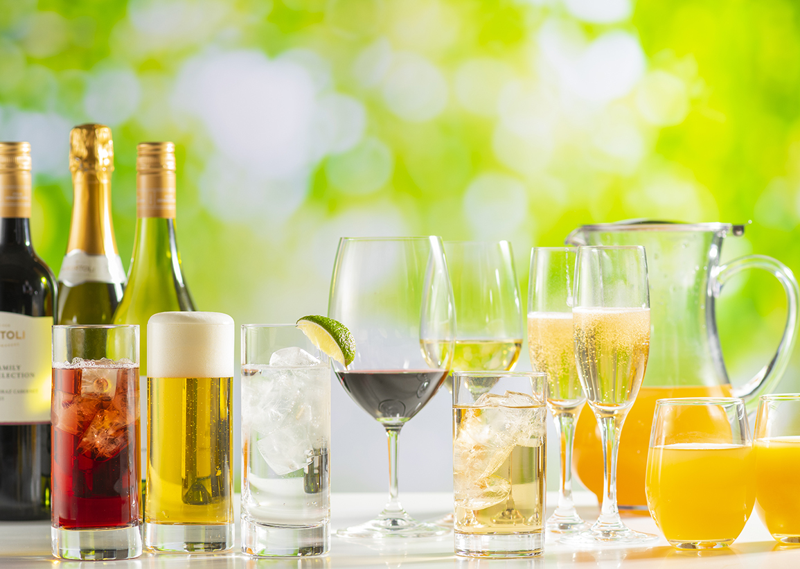 Sparkling, Coffee, tea, cafe latte, espresso, oolong tea, green juice, orange juice, apple juice, grapefruit juice, grape juice, pineapple juice