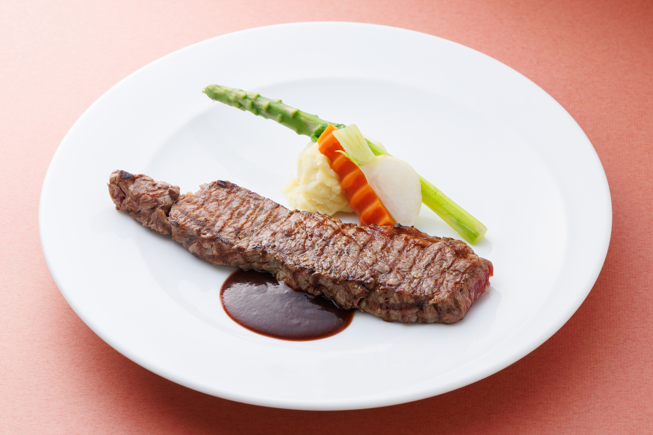 牛ロースのグリエ ポテトのピュレと赤ワインソース添え
