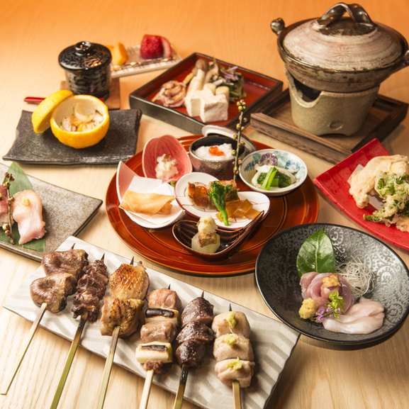 串焼きをメインとしたコースに旬の一品等を加え、〆の食事までご堪能いただけるコース料理です。