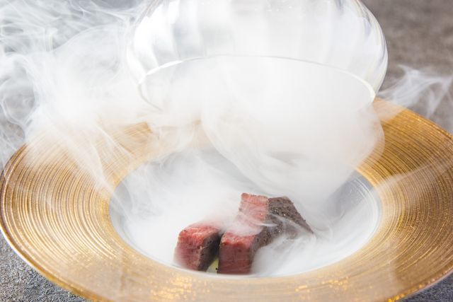 Yakiniku Ushimitsu was inspired by the famous Nishiazabu Kenshiro. Adding to this a mixture of French and Italian vibes the new concept was born. If you choose course menu for the main dish instead of yakiniku you get some seasonal vegetables, a platter of starters, cold noodles and variety of other dishes. Enjoy it in the modern and relaxed atmosphere of the restaurant.