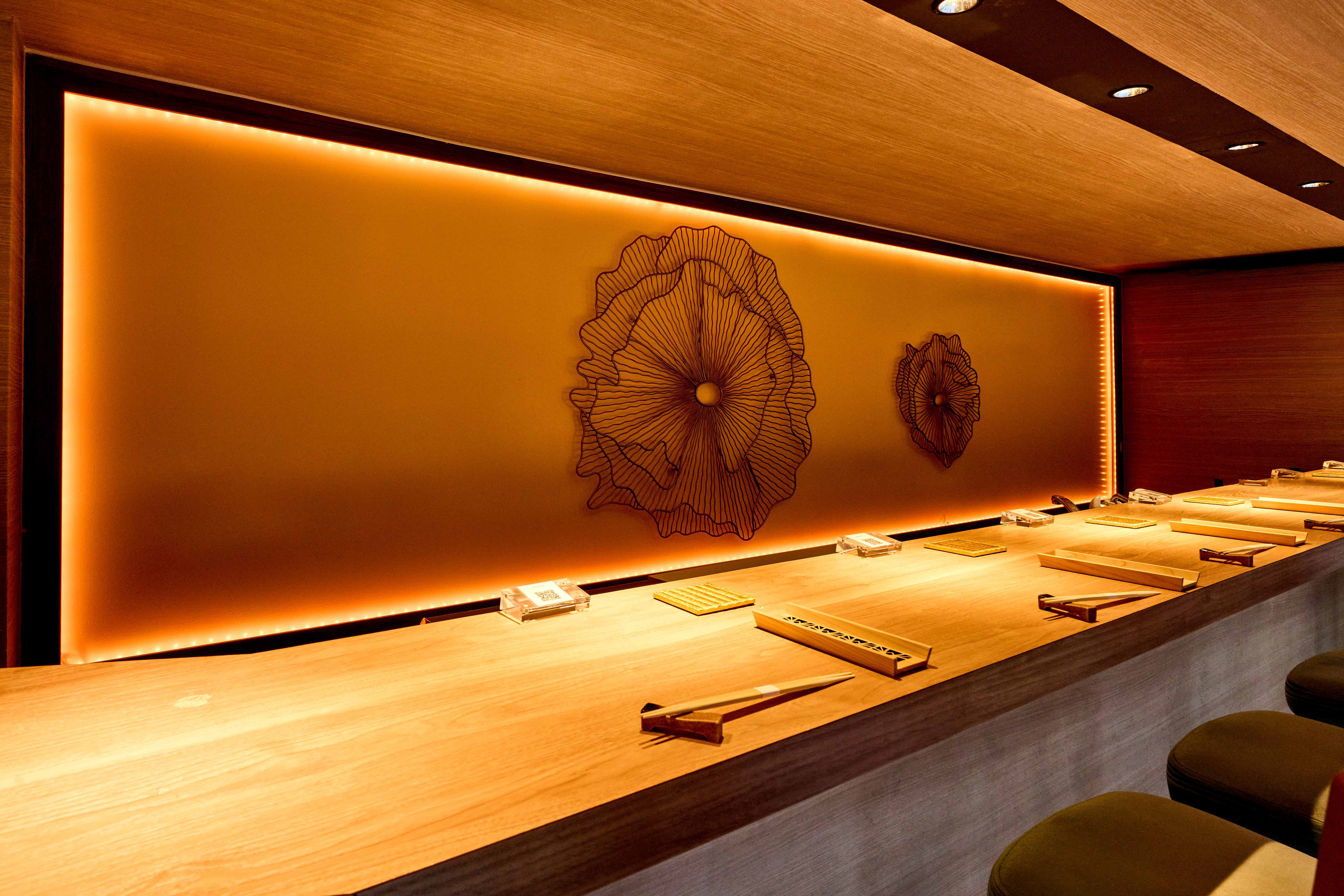 This premium course offers 12 premium nigiri with three seasonal dishes, a 5‑kind sashimi assortment, soup and a seasonal dessert. Items may vary daily.