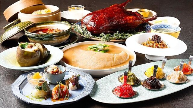 An example of a day ■Soup with bamboo shoots and Jinhua ham ■Assorted appetizers ■Xiao long bao Iwachu pork and crab siomai ■Wagyu beef crepe spring rolls ■Peking duck Stewed shark fin or shark fin steak Abalone mapo tofu Wagyu beef steak fried rice Shark fin thick soba noodles Aoki almond tofu