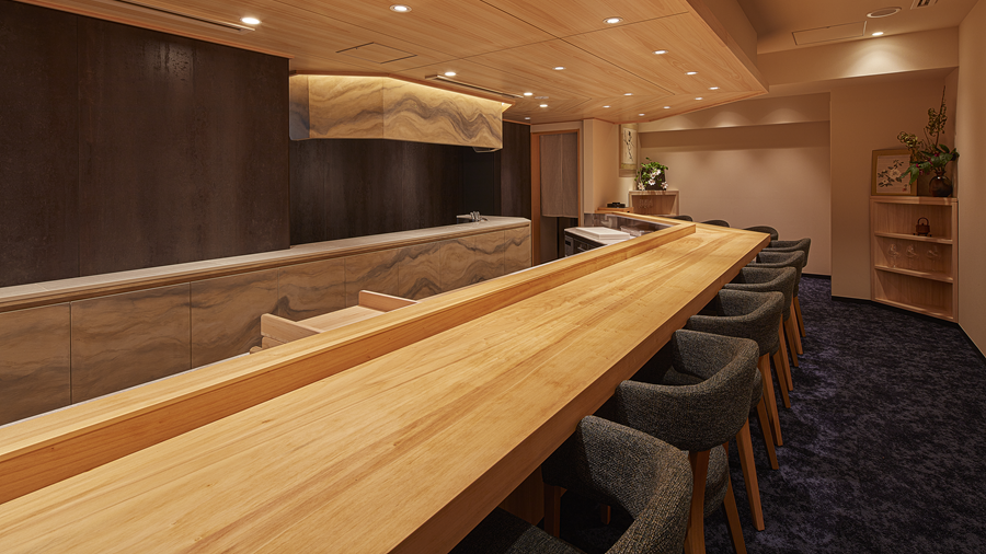 銀座の喧騒を感じさせない落ち着いた空間。カウンター席から見える料理人の手仕事。食材は料理長が厳選し、新鮮なお造り、焼物、しゃぶしゃぶなど堪能していただけます。お料理と合わせ地酒、ワインなどをお楽しみください。