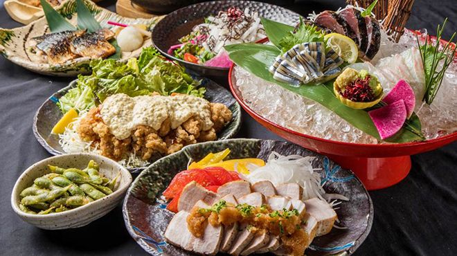 薩摩の酒蔵をイメージした、和の趣あふれる空間で九州食酒巡り。 全席個室の“大人の隠れ家”のような空間で味わえるのは、九州の海と大地に育まれた、 厳選食材を活かした料理の数々。ファームから直送される馬刺し、羽付鉄板餃子、博多名物辛子明太子の炙りや 自家製タルタルのチキン南蛮など、人気メニューが揃う。また生け簀には旬の魚を準備しており、御造りや天ぷらなど 旬を味わう楽しみも。選りすぐりの蔵元の、80種類ほどの地酒や焼酎など豊富なドリンク類を合わせていただき、九州の“すごかもん”に酔いしれて。