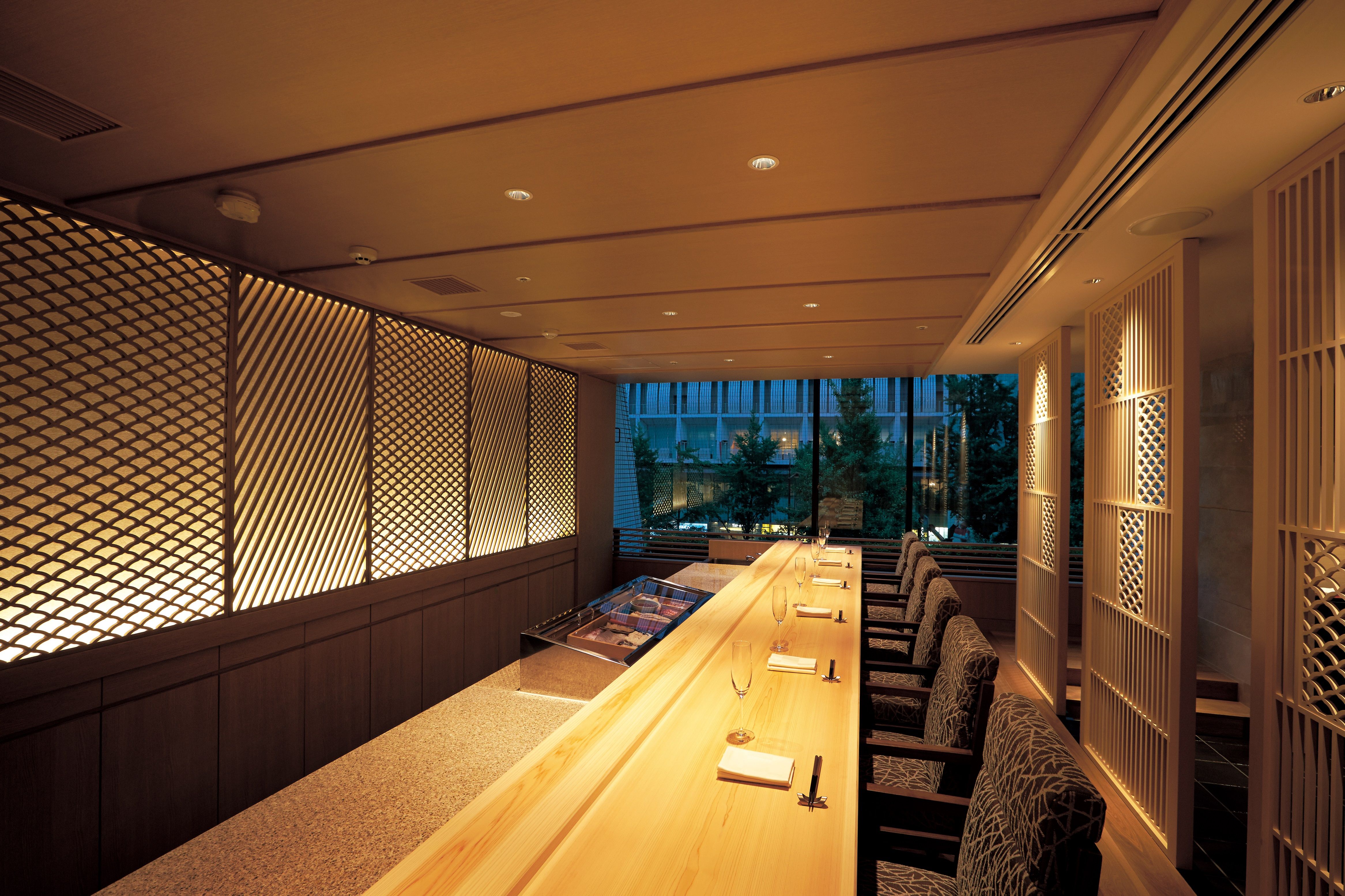 幾種もの食材から一つひとつ丁寧に取る“出汁”を信条に、食材の魅力を最大限に引き出す「弁慶」の伝統を受け継ぎながら造り上げる、季節を体感できるお料理の数々をぜひ、お愉しみください。 吉野産ひのきを使用した寿司カウンターでは、職人の技を目前にしながらの寿司の数々をご堪能いただけます。