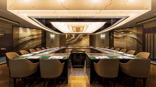 店内は、和洋の美を融合したインテリアと落ち着いた間接照明が特別な空間を演出しています。ゆったりとした開放感あふれるカウンターで食事を楽しむことができるほか、プライベートな時間を過ごしたいお客様のために個室もご用意しております。フランス料理に精通したシェフが目の前で焼き上げるのは、旬と産地を見極めた味わい深い食材です。和食の神髄であるおもてなしの心でお届けする料理をご堪能下さい。