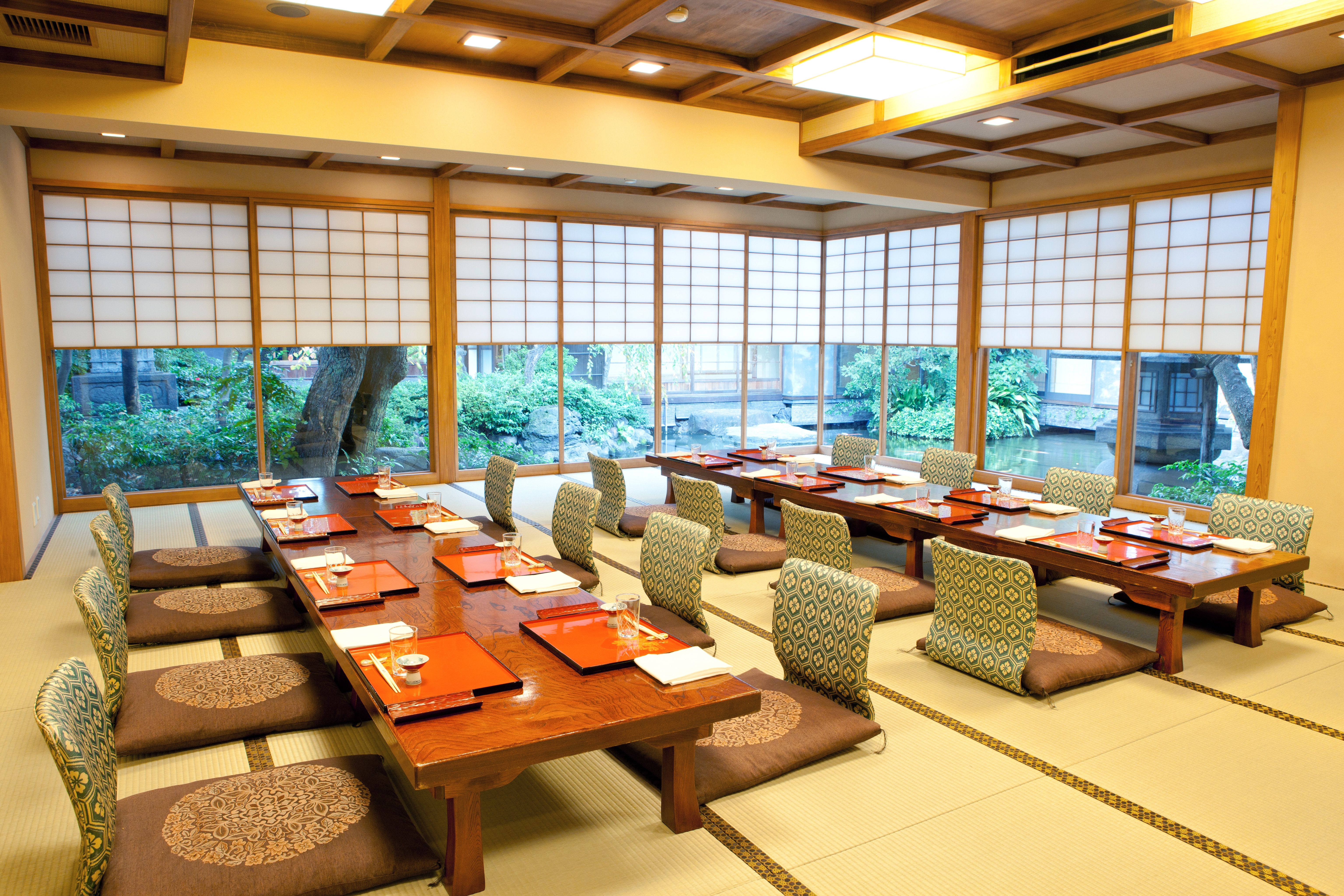 Tsukiji Jisaku is a traditional Japanese restaurant, opened in 1931. You can view the spacious Japanese garden, its beauty changing with each season, with a large pond where beautiful colored carp swim, as you enter the traditional Japanese structure, taking off your shoes as you would do in a Japanese home.
