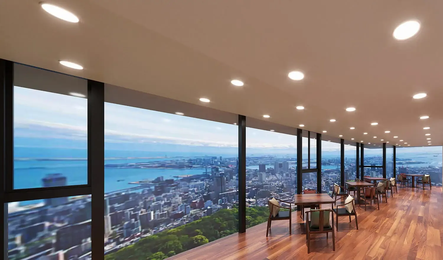 文化と共栄して自然と共存するレストラン 神戸の絶景を心に刻む 眼下に広がるのは、陽光で輝く山の緑、街並みの向こうに広がる海、間近に迫る夜景。自然に包ま れながら都会の躍動も感じられる特等席をご用意します。昼と夜、春夏秋冬で表情を変える神戸の 絶景をお楽しみください。