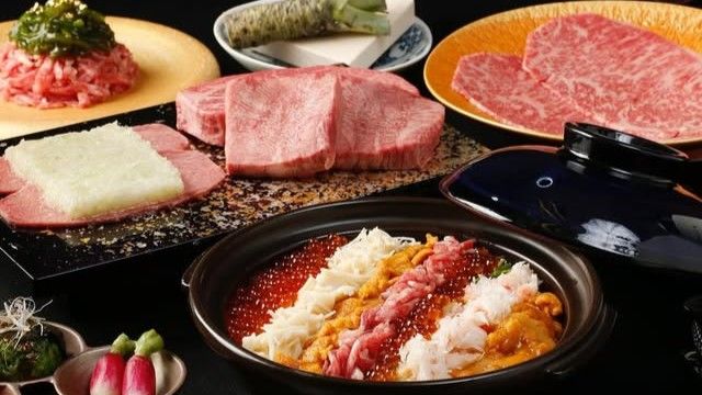 ・Insalata Bagna Cauda・King Kimchi・Namul・Gunkan di ricci di mare・Controfiletto con pasta di pepe verde・Tatami lingua di cipolla verde con sale・Lingua di manzo tagliata a fette spesse・Bistecca di manzo Wagyu・Chateaubriand・Chateaubriand tempura・Controfiletto di grandi dimensioni・Super fresco frutti di mare in pentola di terracotta riso o tartufo e foie gras in pentola di terracotta Riso/dessert