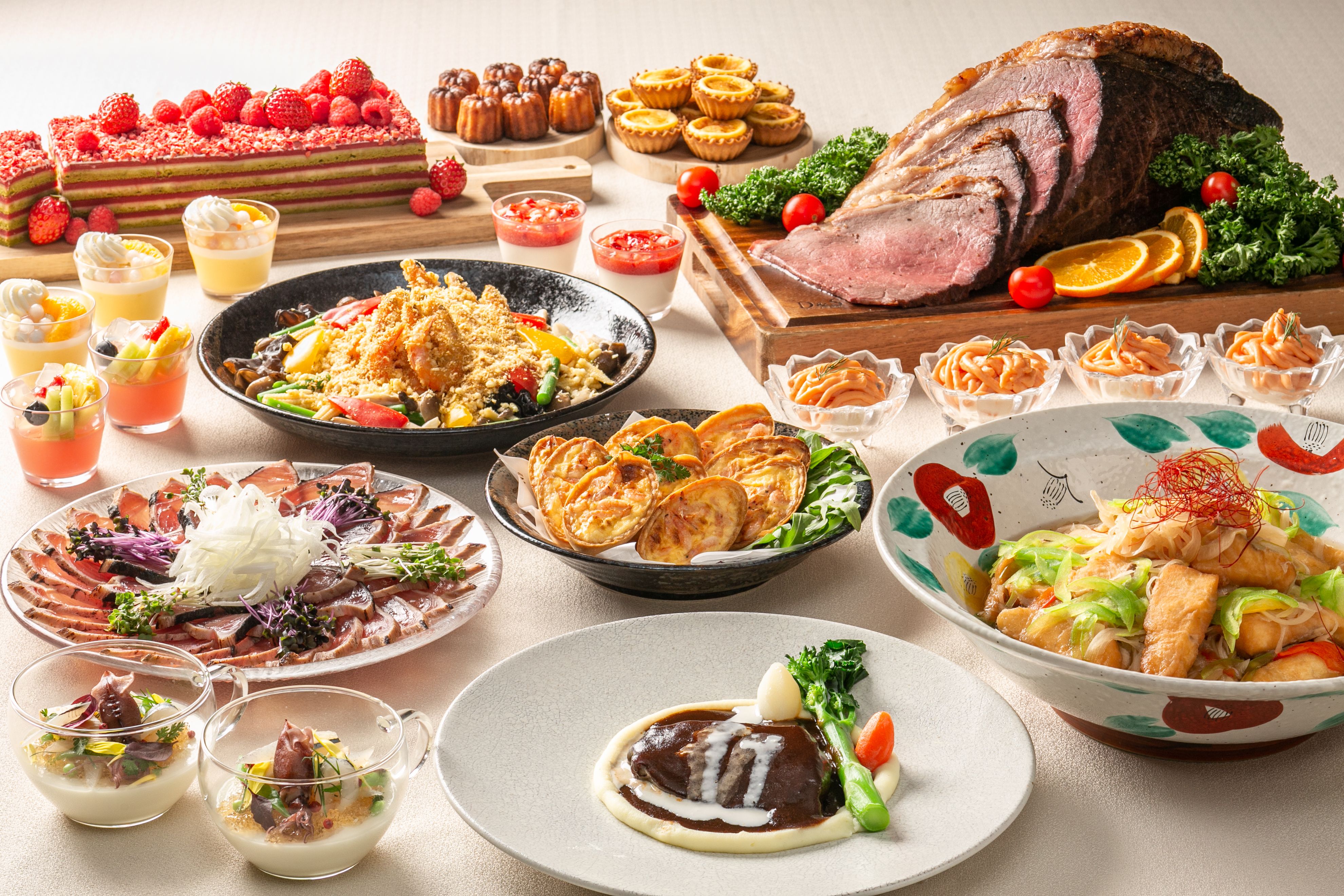 ローストビーフや握り寿司の数々など出来立てのお料理をパフォーマンスとともにおしゃれでわくわくした時間をお届けいたします。 四季折々の食材を使用した五感で楽しむブッフェをご堪能ください。 お誕生会やご家族の集まり・会社のグループでの懇親会など飲み放題もご用意しておりますので少人数から大人数のお集りまでご利用いただけます。