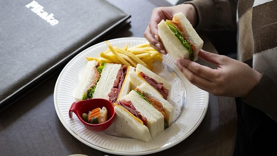 ティーサロン ピカケは、広々としたロビーのような開放的な雰囲気で、くつろぎのひとときをお楽しみいただけます。パティシエが手掛けるスイーツや、スタンダードな軽食を取り揃えております。特におすすめのアフタヌーンティーは、見た目にも美しく、心を満たすひとときをお約束いたします。