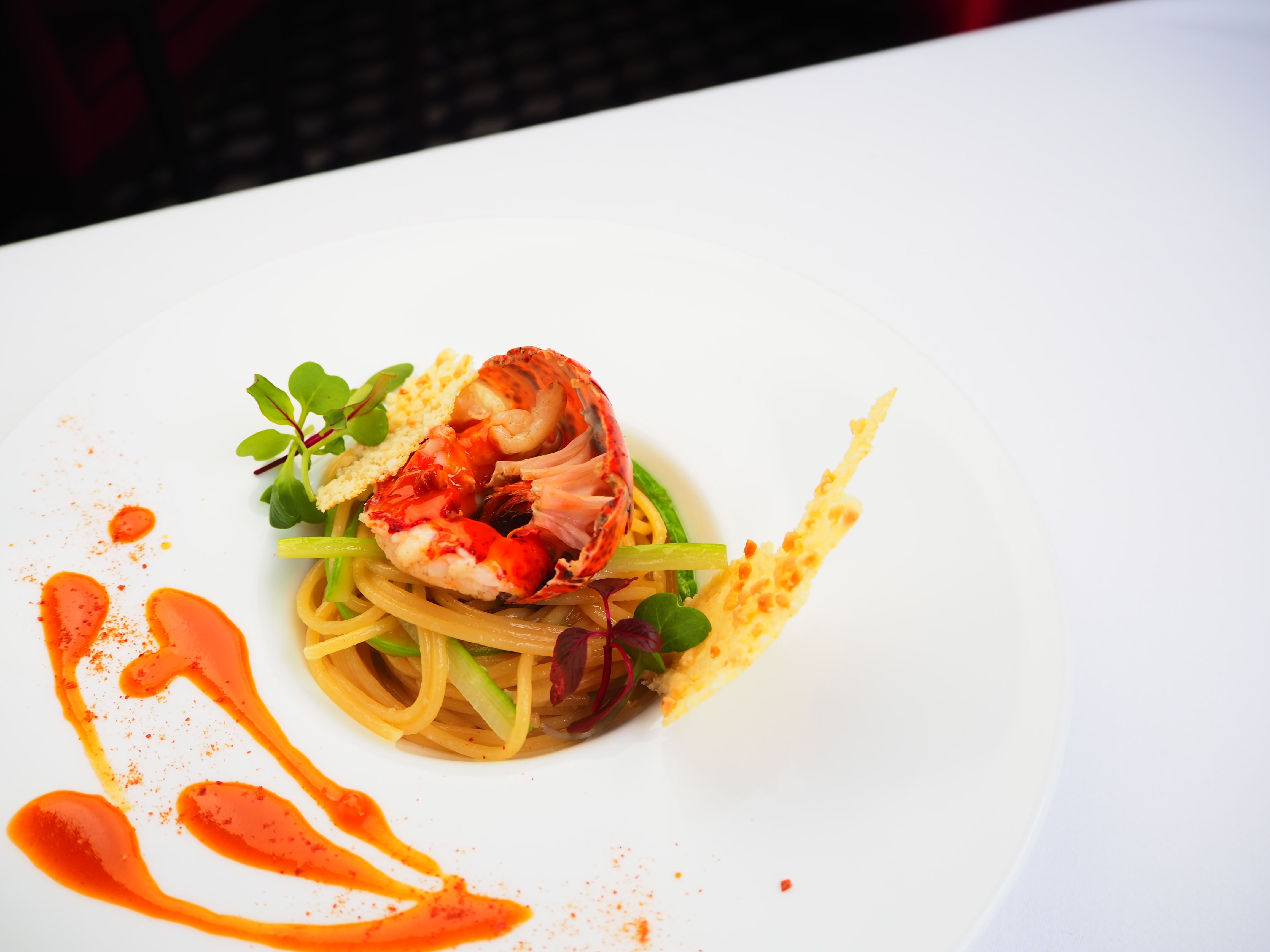 ■ Truffle Ice Cream ■ Red Shrimp Ceviche ■ Sautéed Foie Gras with Plum and Caramel Sauce ■ Chef's Recommended Pasta ■ Lobster Beignets with American Sauce ■ White Peach and Cherry Tomato Salad ■ Pan-Fried Snowy Wagyu Beef with Red Wine Sauce and Summer Truffle ■ Fruits Rouge Epices ■ Coffee or Tea