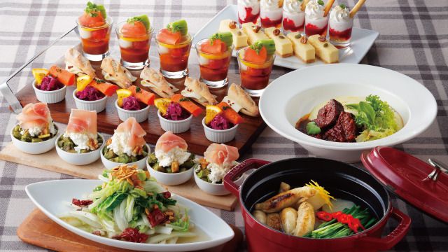 Great care is taken into preparing the simplest menus to provide the best buffet experience. Using only the best materials such as fresh vegetables, meats, milk, and drinks from Hokkaido, even the most familiar dishes will taste more refined. Guests can choose from over 40 types of lunch dishes and desserts ranging in Japanese, Western, and Chinese. Courses are available for dinner.