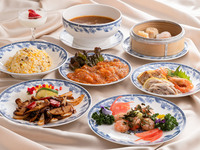 本日の前菜4品盛り/牛肉と野菜の炒め/ホタテ貝の柚子香り塩炒め/本日の点心3種盛り合わせ/海老の香港風チリソース/ピリ辛山椒焼き飯/フカヒレスープ/本日おすすめデザート