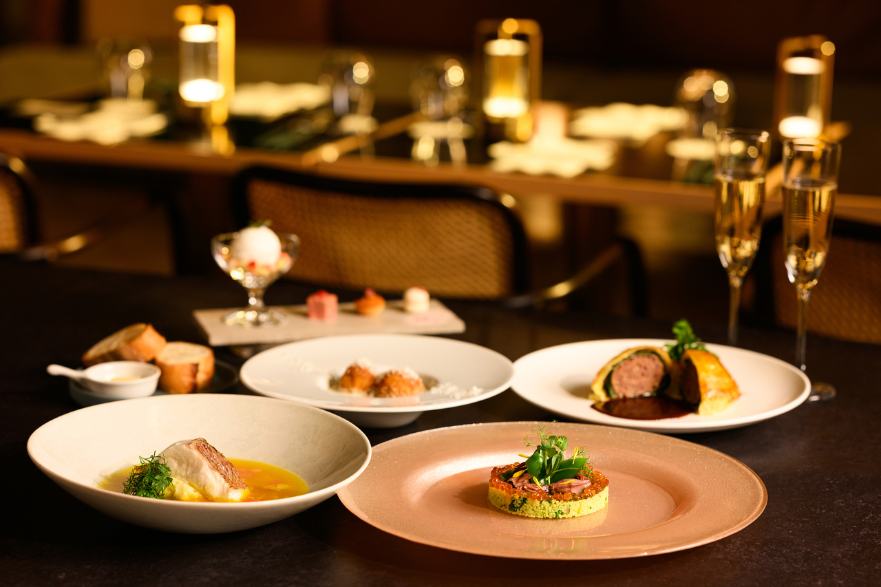 This limited-time afternoon tea is filled with the vibrant world of berries. The first and second tiers feature delightful treats like strawberry shortcake and tarts, sweet and sour berry mousse, and white chocolate and blackcurrant mousse. The third tier offers seasonal savory dishes like cauliflower royale with snow crab and consommé jelly, and strawberry, tomato, and milk cheese caprese. Enjoy a special moment filled with the vibrant colors of berries, along with approximately 20 free drinks.