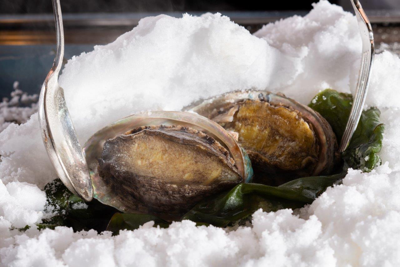 鮑の岩塩蒸し・ガーリックライス含む全7品とアトリエデザート