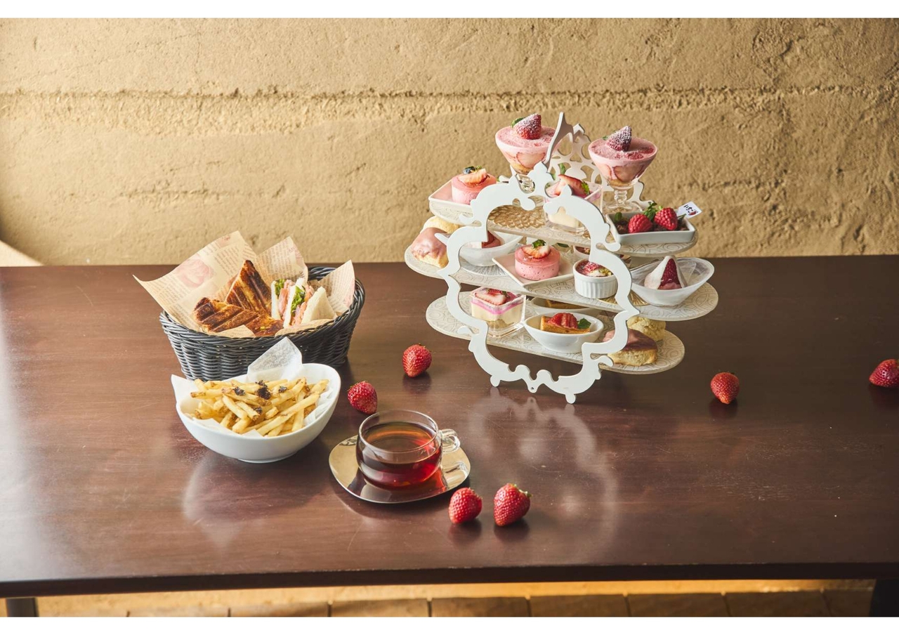 苺とチョコレート、抹茶が織りなす季節限定アフタヌーンティー。華やかな苺スイーツに、スモークサーモンのキッシュやトリュフ香るポテトなどのセイボリーを添え、甘さと塩味のバランスを楽しめる優雅なティータイムをご提供します。