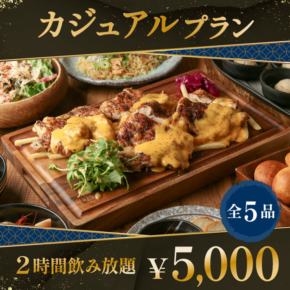 《DENのカジュアルライトプラン!2.5時間飲み放題付き‼》人気&季節の前菜3種や料理長お勧めお肉料理など全5品 お一人様5,500円