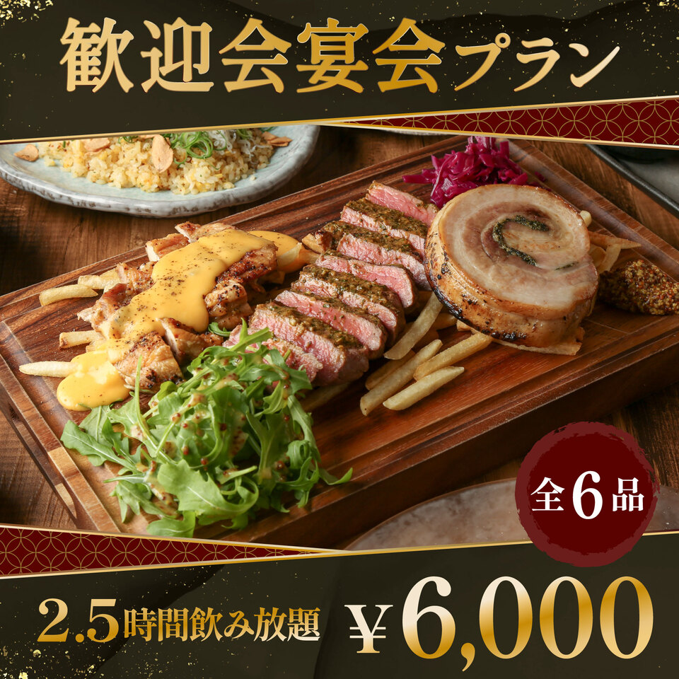 4/13~歓送迎会にオススメプラン‼人気メニュー特盛コース♪》季節の前菜3種やカルパッチョ、豪華お肉料理盛り合わせにガーリックライス付き全7品【ゆっくり3時間飲み放題付き】お一人様7,000円
