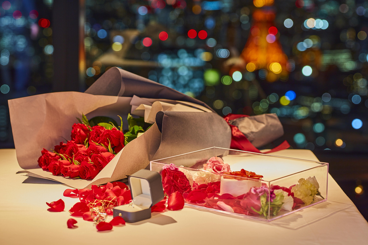 Domande sulla 【Piano di proposta di matrimonio】 con un bicchiere di champagne + un bouquet di dodici rose + torta nuziale in scatola (vista garantita sulla Tokyo Tower, sala privata) solo a dicembre