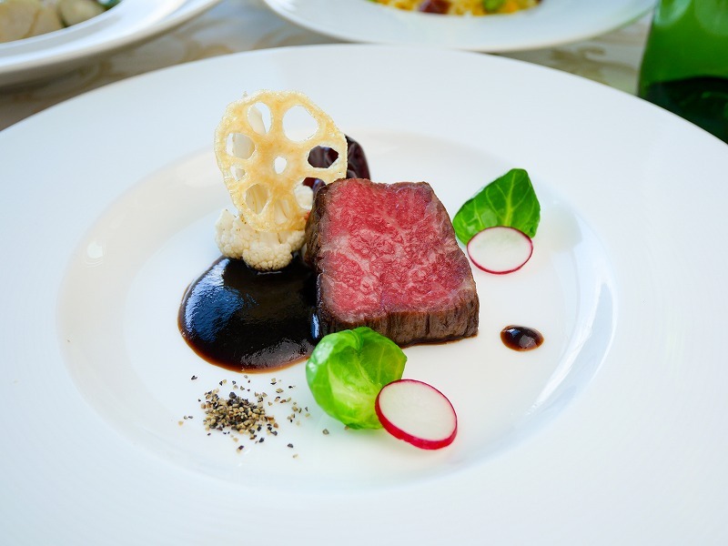 料理長 石原のシグネチャー料理「滝川産合鴨肉の香り焼き ダックロール」や、フカヒレ、十勝彩美牛のサーロインなど、贅沢食材をふんだんに使用した特別なコース。