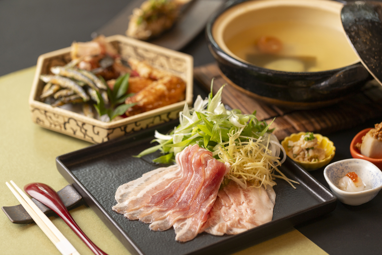 国産豚のしゃぶしゃぶや黒舞茸炭火焼きなど香りも楽しめるプランです。