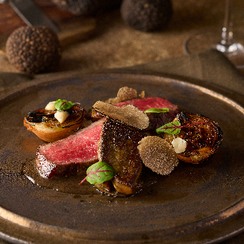 黒毛和牛、オマール海老、トリュフの一皿 ピスタチオとグリーン野菜のリゾットを添えて