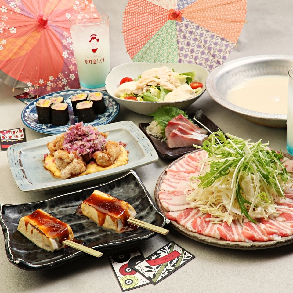 【お食事コース】京都ポークのしゃぶしゃぶ、若鶏の京しば漬タルタル南蛮など全8品