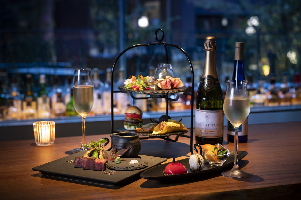 季節の食材を贅沢に使った二段のプレートと、洗練されたドリンクをセットにした、