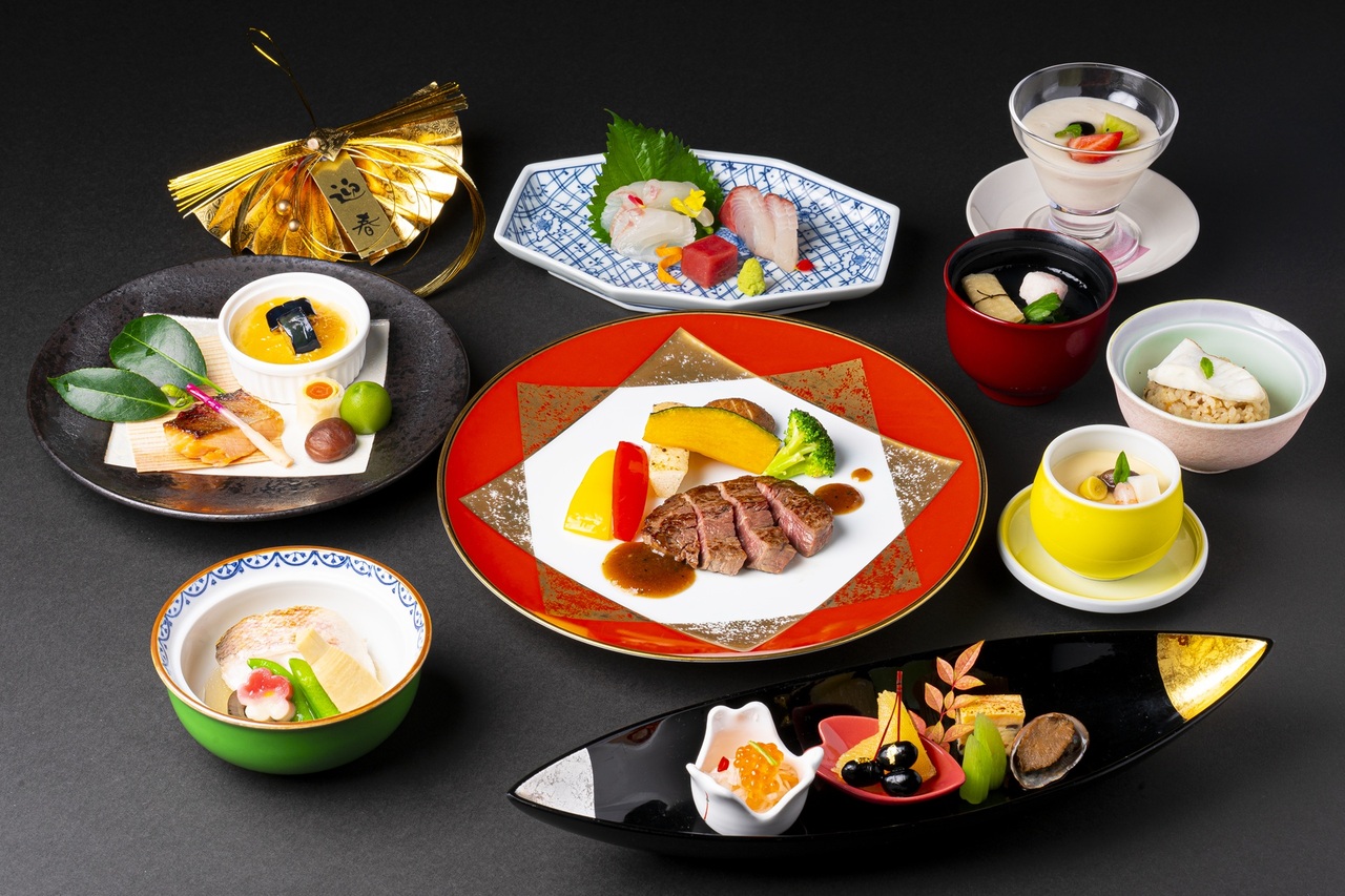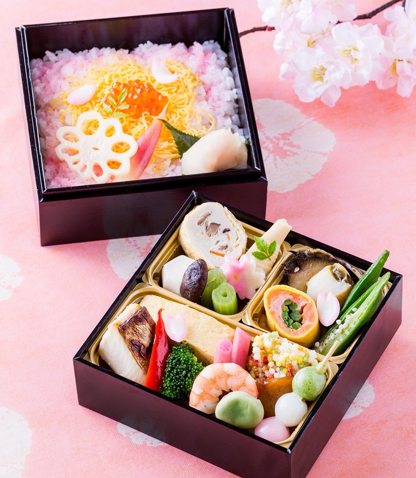 彩り小箱/あら炊き/蒸し物/白ご飯/香の物/汁物/甘味