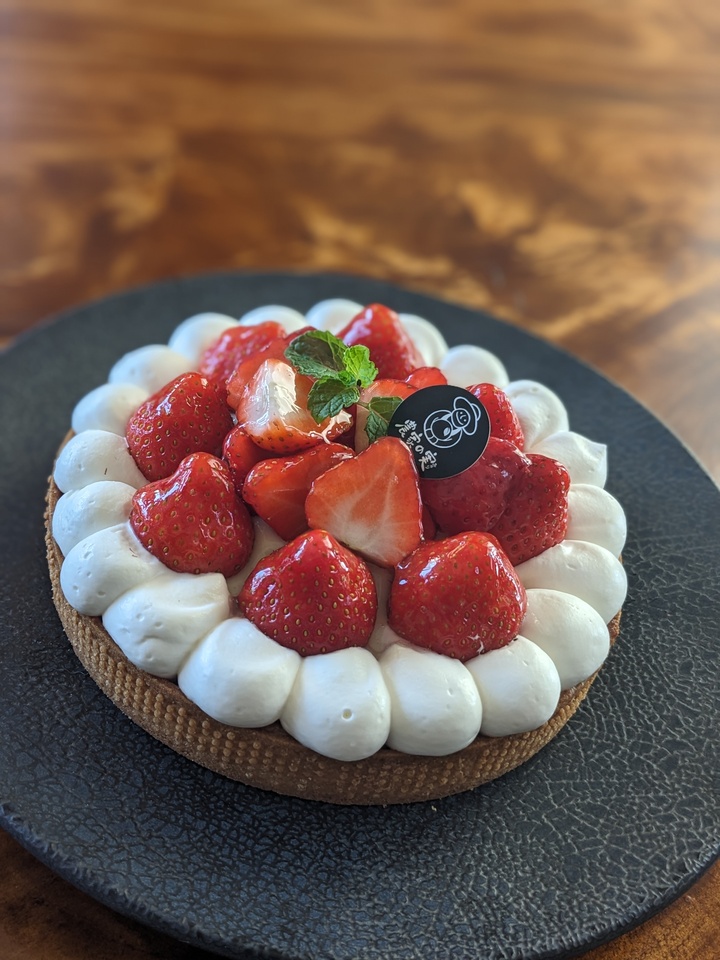 This tart is made with only rich homemade custard and large Amaou strawberries on top of a crispy tart crust.