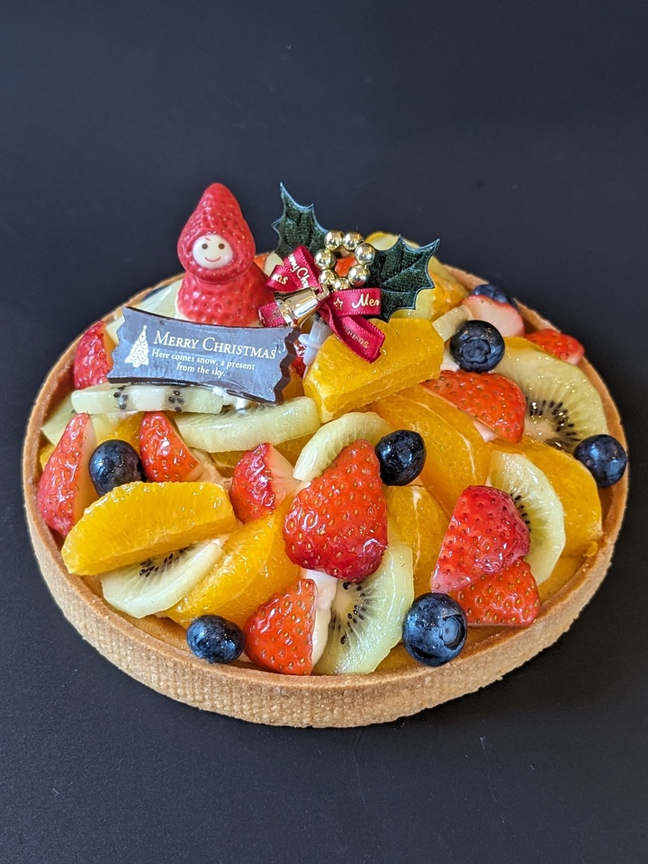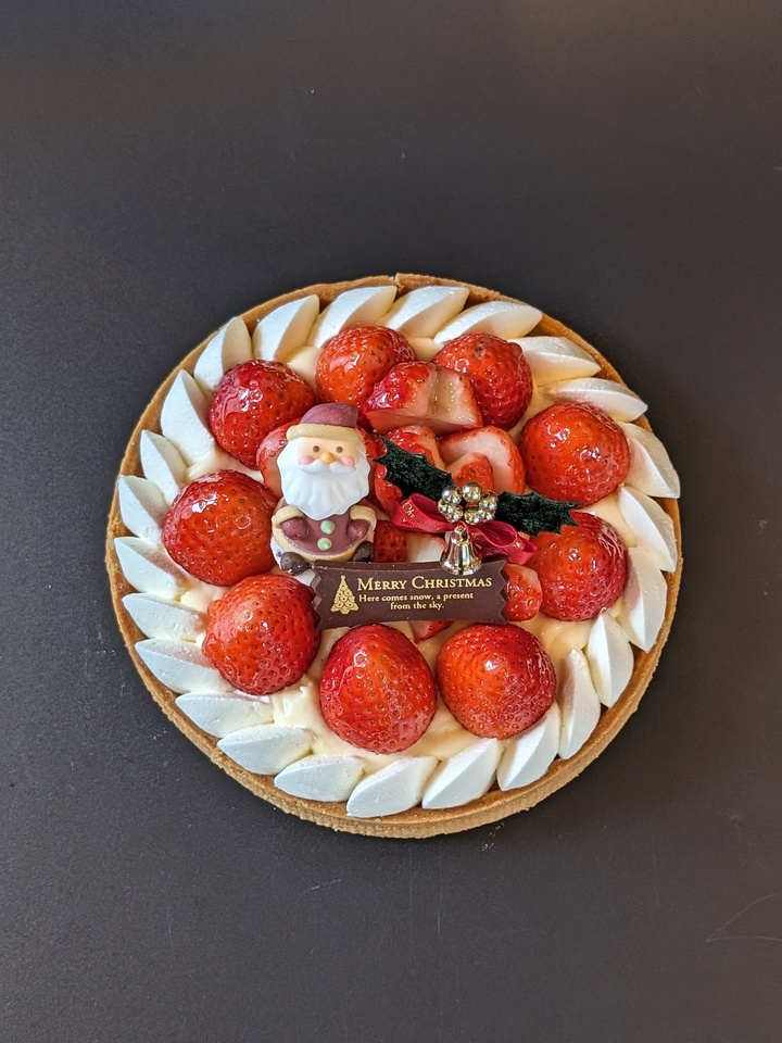 A luxurious wreath tart inspired by a Christmas wreath, lavishly topped with Shine Muscat grapes and domestically grown strawberries. Available in 24 cm size only.