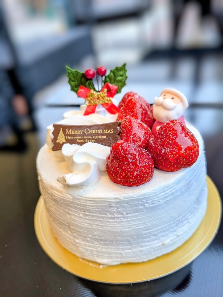 Our popular rice-flour roll cake is filled with whole, locally grown strawberries. Enjoy it with plenty of festive Christmas cheer.