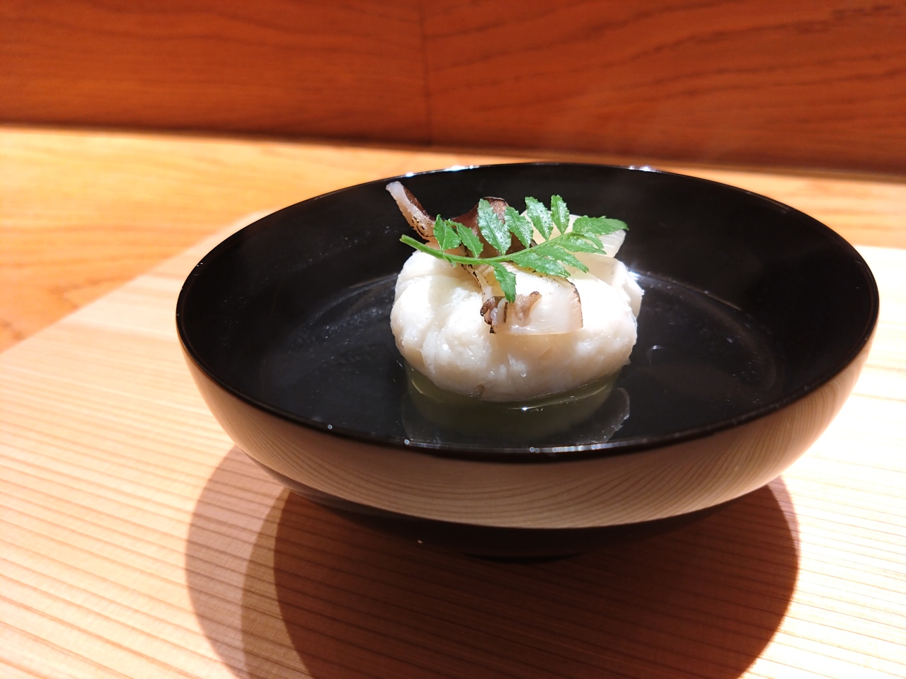 先付、椀物、お造り、お凌ぐ、八寸、焼物、蒸物か揚物、土鍋ご飯、デザート、計9品(季節の食材を使用した基本のコースです)