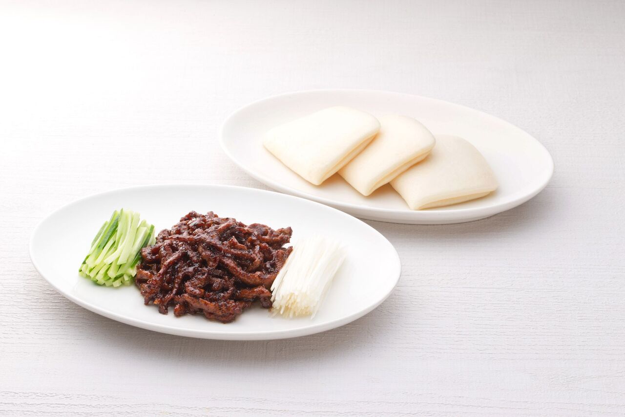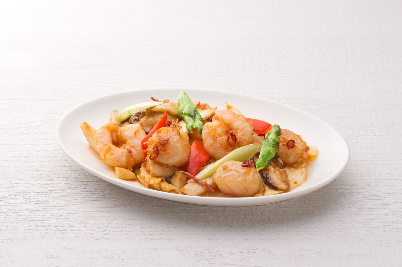 四川省で愛されている鶏肉の炒めを県産地鶏「富嶽白鶏」で仕上げました。芽菜(ヤーツァイ)の独特な味わいをサンチュに包んでお召し上がりください。