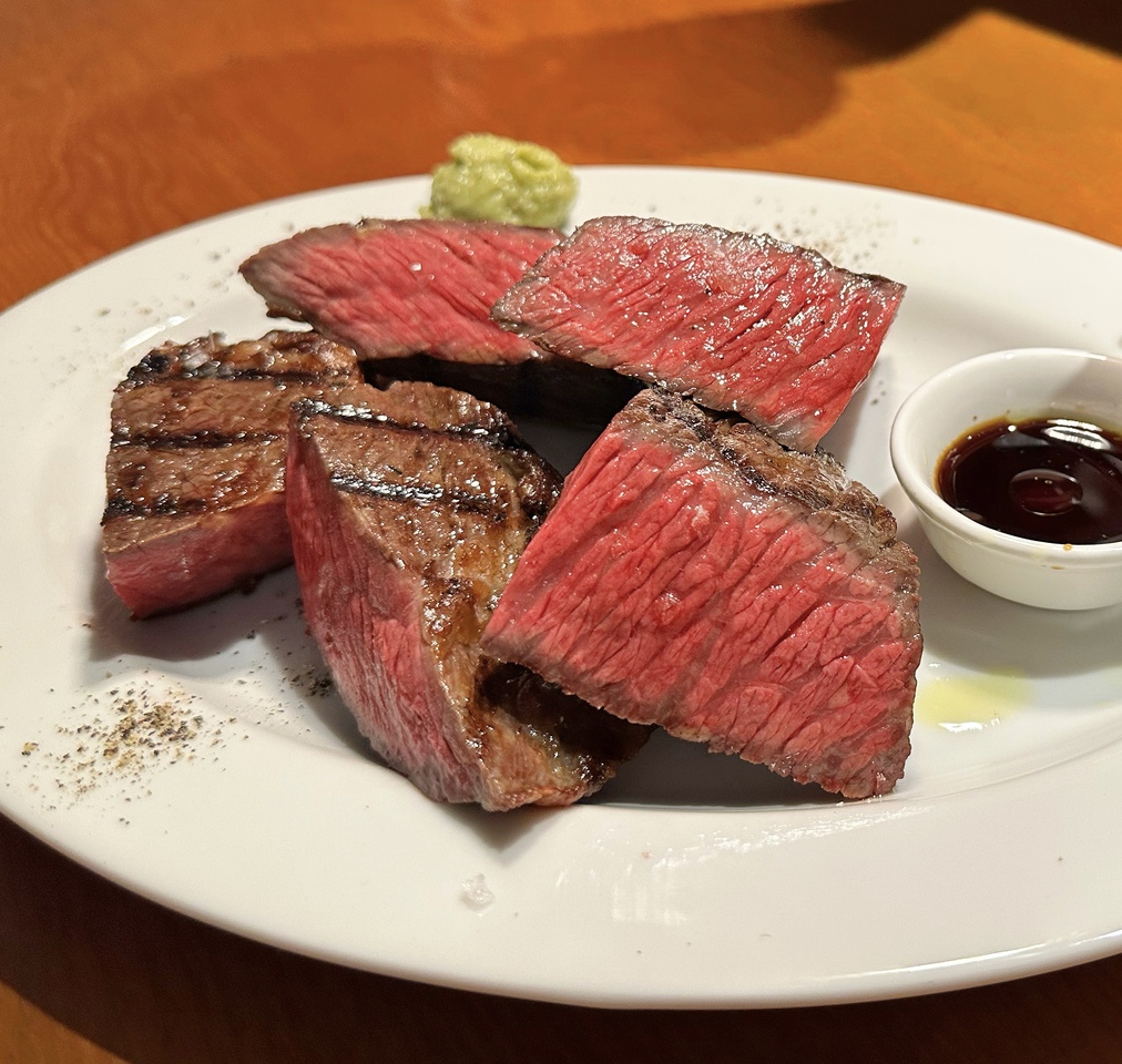 メインディッシュにA5ランク和牛炭火焼きが100g付くコースです!