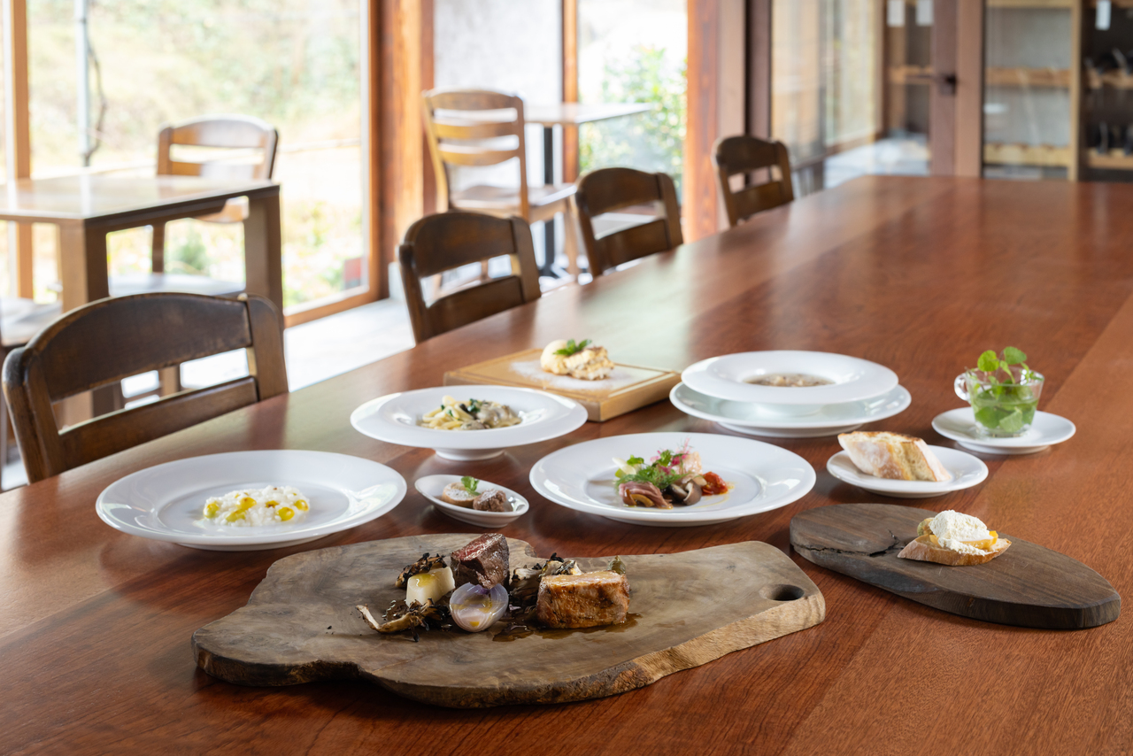 富山県産ジビエと小矢部産メルヘン牛の薪焼き料理をメインとした10品のコース