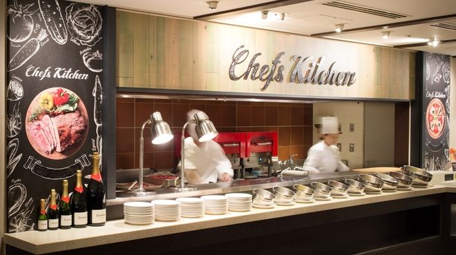 カジュアルで利用しやすさを前面に出しつつも、ホテルダイニングというラグジュアリーな要素もしっかり感じられるモダンな内装です。ディナータイムには、ライトアップされた東京ドームや後楽園ゆうえんちの夜景を眺める非日常空間を味わう事が出来ます。お料理のカウンターは和・洋・中・スイーツに分かれており、それぞれ季節毎のおすすめメニューをご用意。また、ご好評頂いております『シェフが目の前でお作りする自慢の一品』も是非ご賞味下さい。