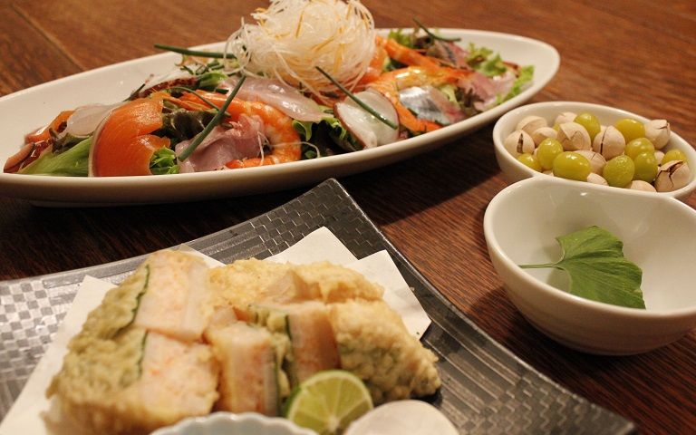 料理メニューは約80種、そのうち50種類が「おすすめメニュー」です。魚や野菜、そして卵や豆腐といった材料にもこだわりを持ち、新鮮で質の良いものを仕入れ、たくさんのおすすめメニューを提供しています。秘伝のたれをつけて備長炭で焼いた焼き鳥も好評です。 また日曜は昼から営業しており、昼呑みも歓迎となっています。昼限定の定食メニューも用意されていますが、これもお酒とよく合う「飲める定食」です。