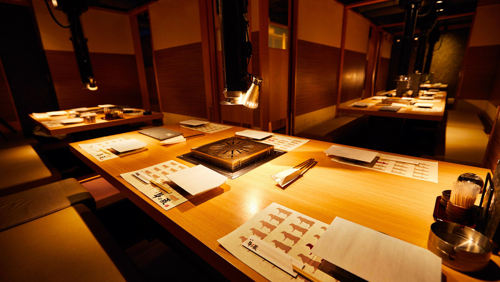 Kagoshima's proud "miracle Satsuma beef" is characterized by its light fat and texture. You can enjoy the meat through thin-cut grilled shabu or thick-cut steak and more. They also recommend the platter course, where you can enjoy multiple cuts little by little. All seats are private rooms and can house a party of up to 52 people. Perfect for various occasions, such as dinner and casual meals.